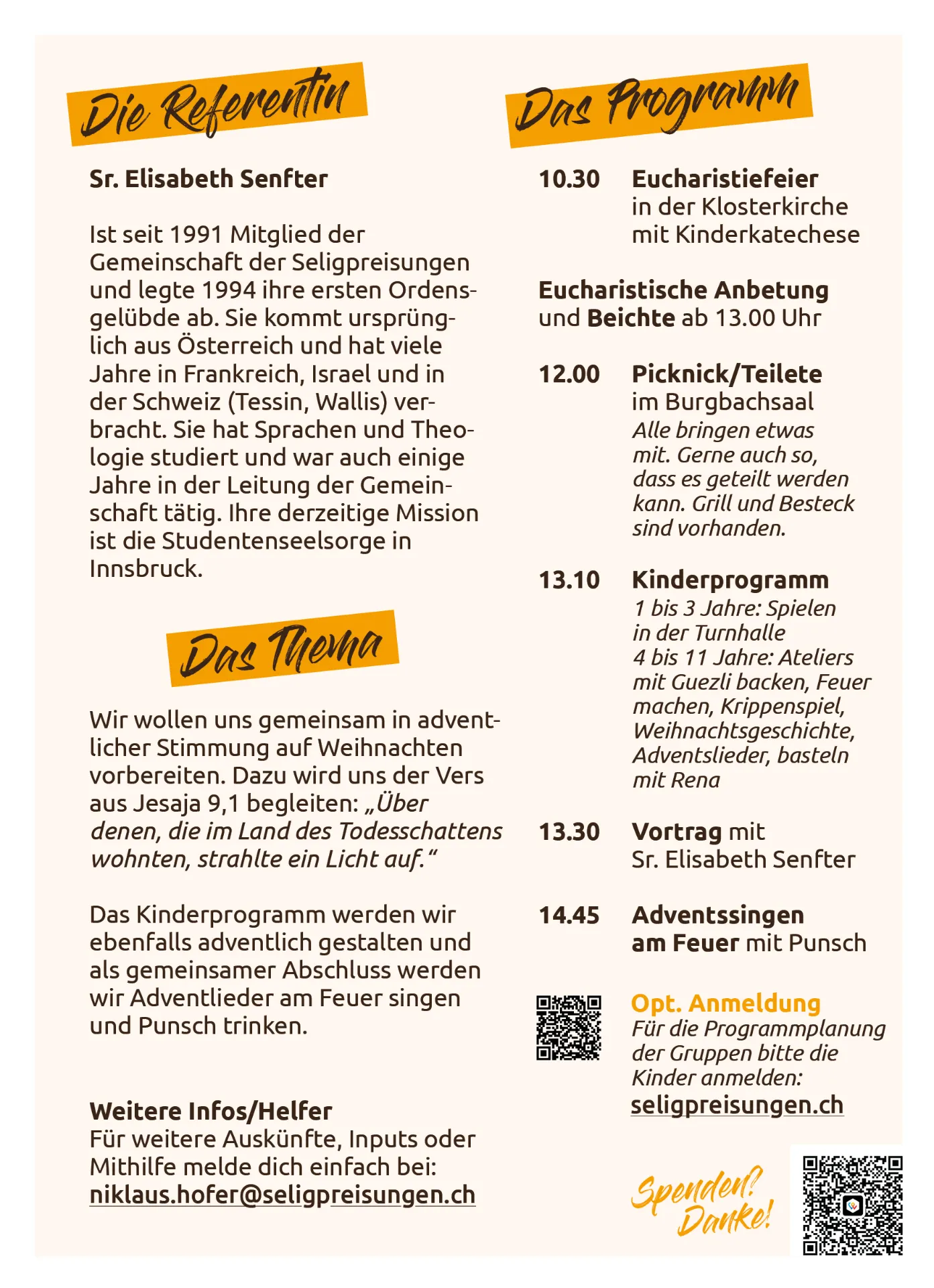 Dieser Anlass steht offen für alle Generationen. Eine Anmeldung ist nicht notwendig, hilft uns aber für die Vorbereitung, insbesondere für die Organisation der Kinderbetreuung. Wichtig! Du darfst kommen und gehen, wie du möchtest und stellst dein eigenes Tagesprogramm zusammen.