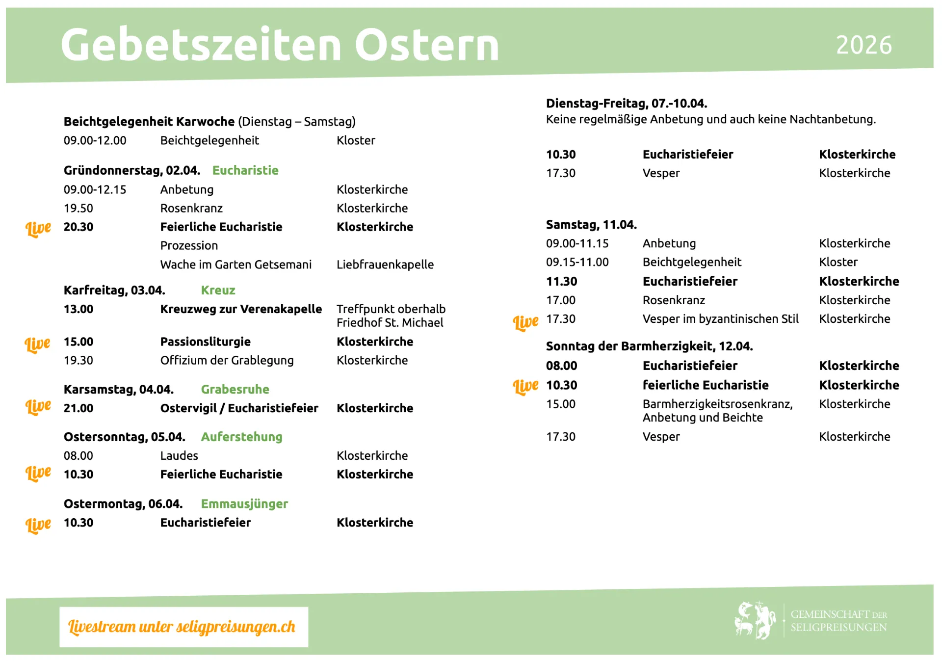 Spezielle Gebetszeiten: Ostern, 02.-12.04.26