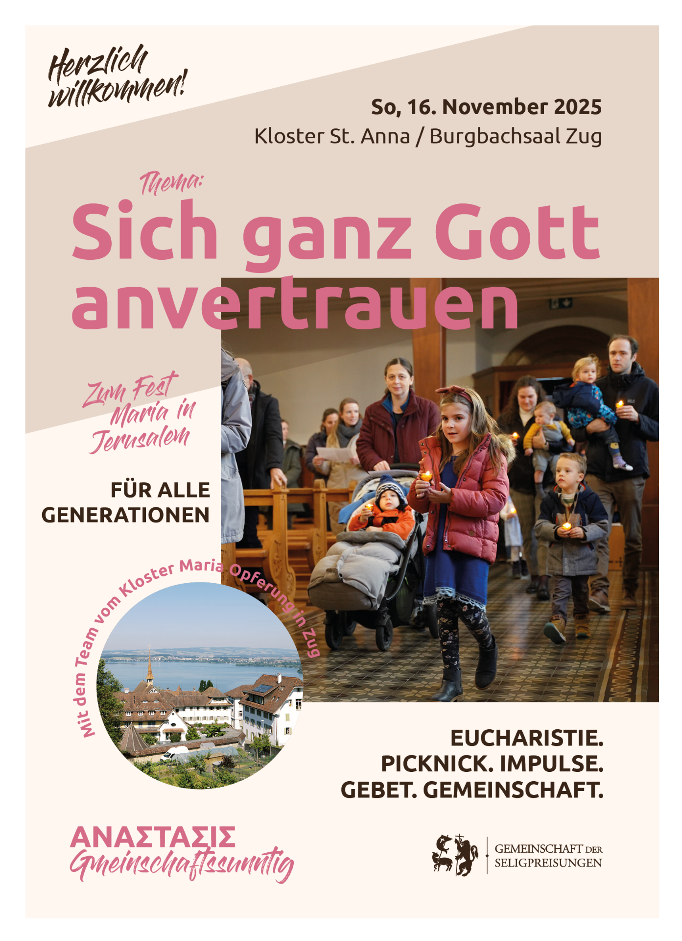 Dieser Anlass steht offen für alle Generationen. Eine Anmeldung ist nicht notwendig, hilft uns aber für die Vorbereitung, insbesondere für die Organisation der Kinderbetreuung. Wichtig! Du darfst kommen und gehen, wie du möchtest und stellst dein eigenes Tagesprogramm zusammen.